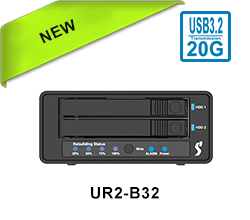 • UR2M-B32: USB3.2 20Gbps M.2 NVMe SSD Hardware RAID Storage