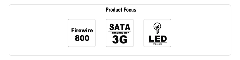 | Standard Option Parts | * S2F x 1 * Firewire 800 Cable x 1 * eSATA Cable x 1 * User Manual x 1 |