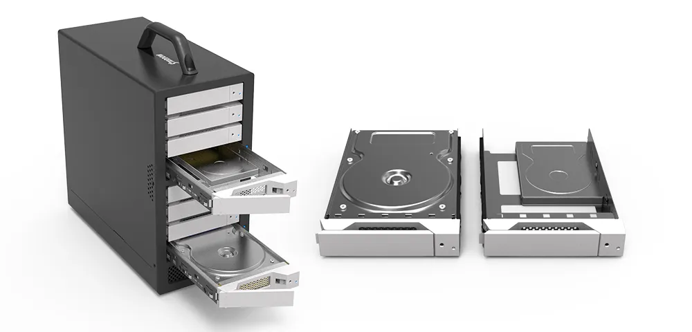 The ST8-U6 takes flexibility to a new level with its hot-swappable drive functionality. Built to cater to dynamic IT environments and urgent storage needs, this feature allows users to quickly and safely insert or remove up to 8 2.5" or 3.5" SATA HDD/SSD drives on-the-fly. This eliminates the traditionally cumbersome process of powering down devices during drive changes, ensuring uninterrupted operations and minimal downtime. Whether you're expanding storage, replacing a drive, or conducting routine maintenance, the ST8-U6's hot-swap capability ensures a smooth, hassle-free experience. The design, coupled with its robust built-in safeguards, ensures data integrity and system stability, even during these swift transitions.