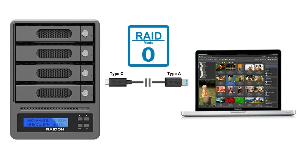 | Storage Mode | JBOD - Independent Mode RAID 0 - Speed Mode RAID 5 - Safe Mode |