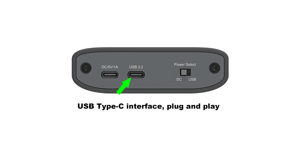 ●5V DC via Type-C: For those who need constant, stable power, we offer a 5V DC input option through the Type-C connector.