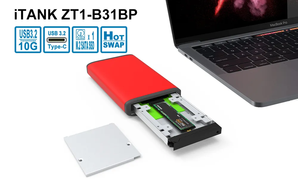 Introducing the ZT1-B31BP, the all-in-one storage enclosure designed for versatility, speed, and cross-platform compatibility. This stylish yet powerful device supports a variety of storage options, including M.2 SATA SSDs and 2.5-inch SSDs/HDDs. With dual power options, it can operate via USB bus power or a 5V DC input. Featuring a broad range of interface support, including USB Type-C and Thunderbolt™ 3/4, the ZT1-B31BP ensures high-speed connectivity with data rates up to 10Gbps. Additional features like intuitive LED indicators, hot-swappable and plug-and-play functionality, secure tray design, and a sturdy aluminum build make it the ideal storage solution for both PC and Mac users on the go.