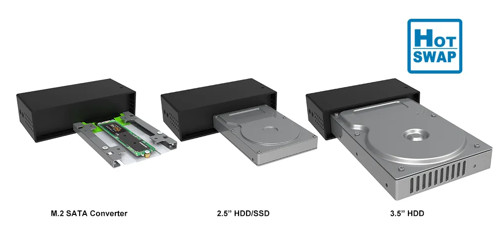 4.Hot-Swappable Drive, 3S2U Adapter to support 1 x 3.5" / 2.5" SATA HDD/SSD.