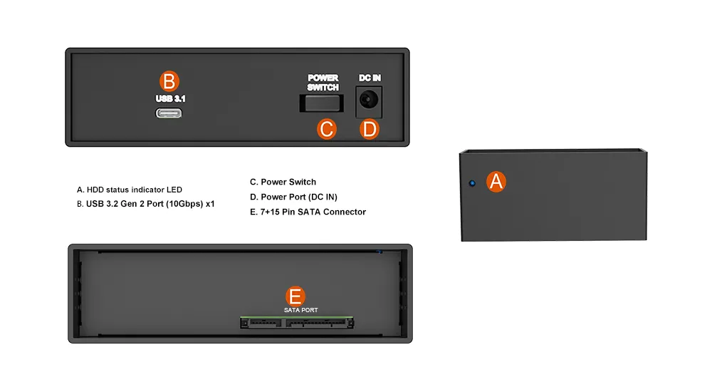 | Compatible Drive | 3.5”/2.5" SATA III HDD/SSD ( up to 6 Gbps ) |