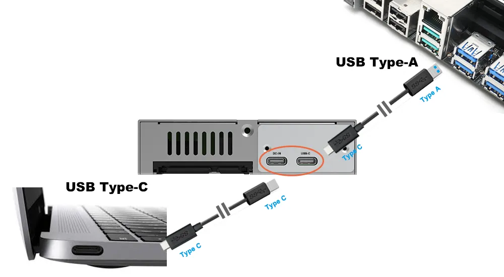 USB 3.2 Type C and Type Connections