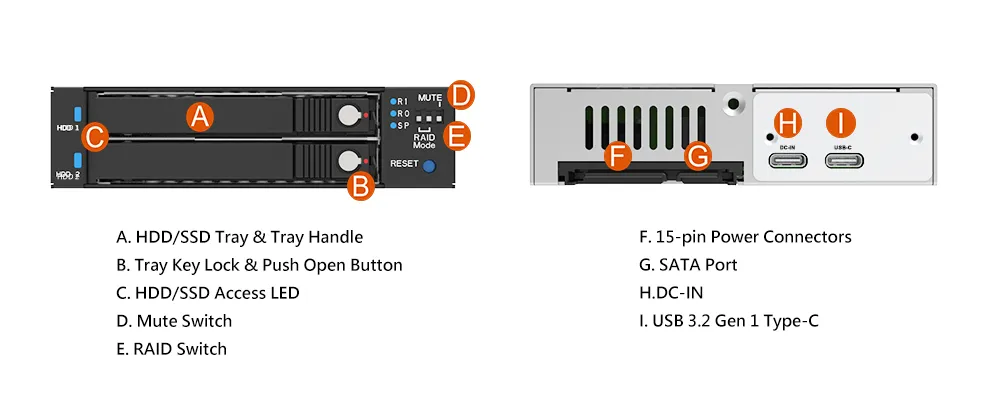 1. Versatility: The module supports both internal and external RAID configurations, accommodating diverse storage setups. It also supports a range of host interfaces including USB 3.2 Type C/ and type A