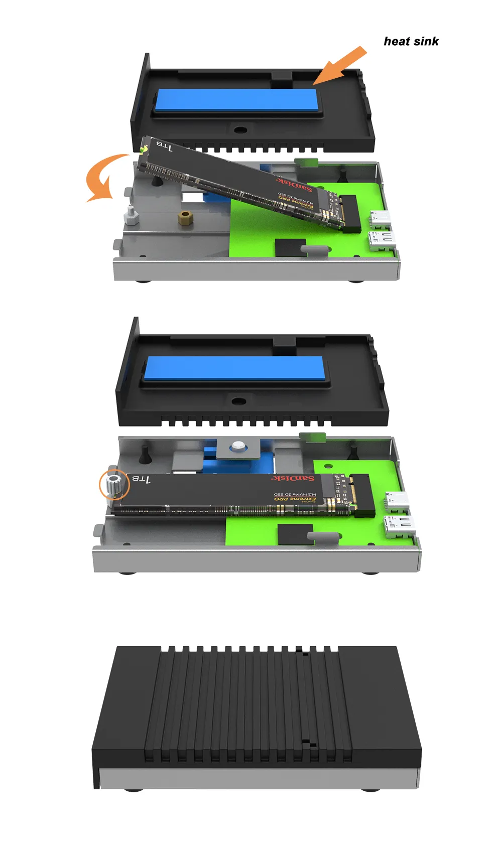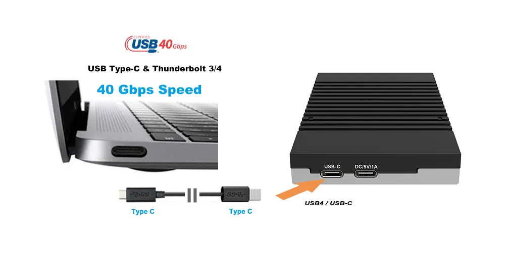 3. Versatile Compatibility: The device's support for various M.2 NVMe SSD sizes and its Type-C interface with Thunderbolt 3/4 compatibility ensures it works seamlessly with a broad range of SSDs and devices.