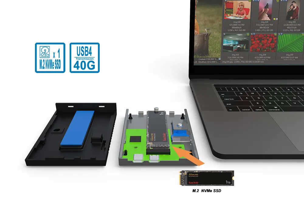 2. Rapid Data Access: With high-speed USB 4.0 and M.2 NVMe SSD compatibility, users can access and transfer files much faster than traditional storage devices.