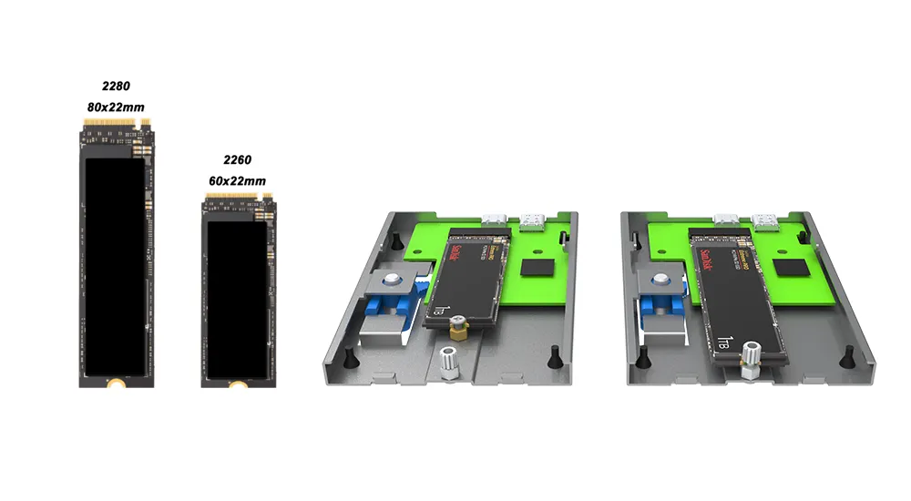 5. Supports M.2 NVMe SSDs of Varying Sizes: