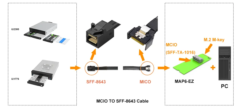 The MAP6-EZ's MCIO (SFF-TA-1016) interface delivers seamless, high-speed data transfers with stable, secure connections, ideal for demanding exchanges.