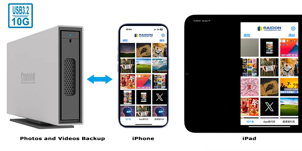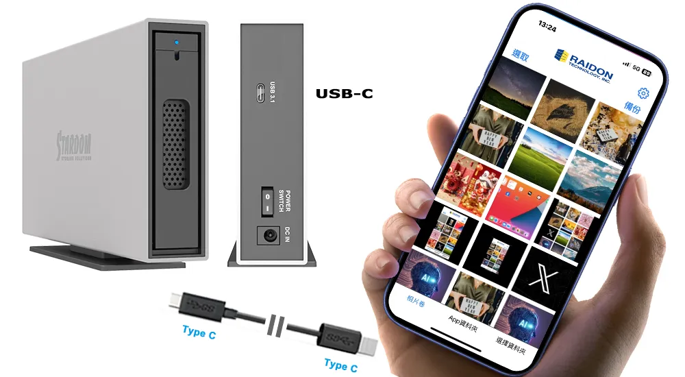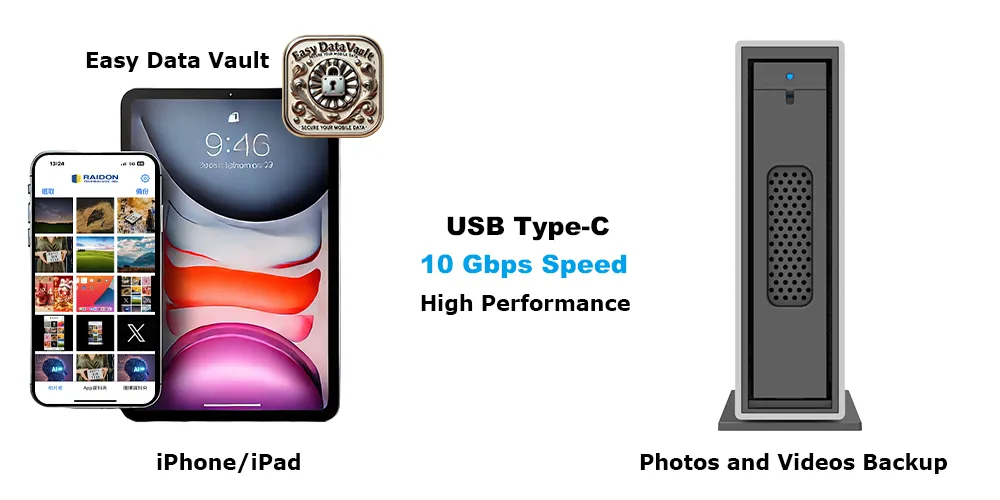 Elevate your storage and backup capabilities with the RAIDON i310-B31 Series (i310-B31 & i310 BA31) and Easy Data Vault app for iPhone 15 and later (with USB-C). This powerful pairing combines high-speed hardware with an intuitive mobile app, delivering efficient and secure data management.