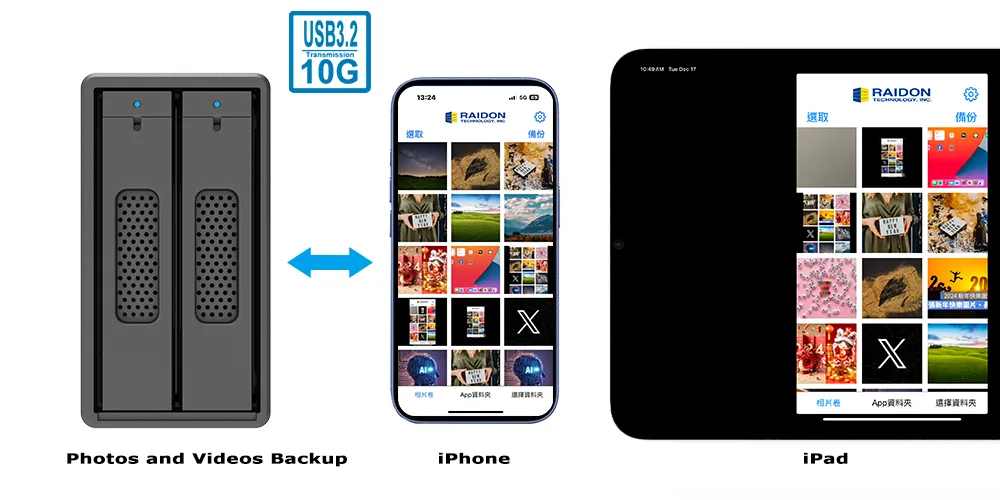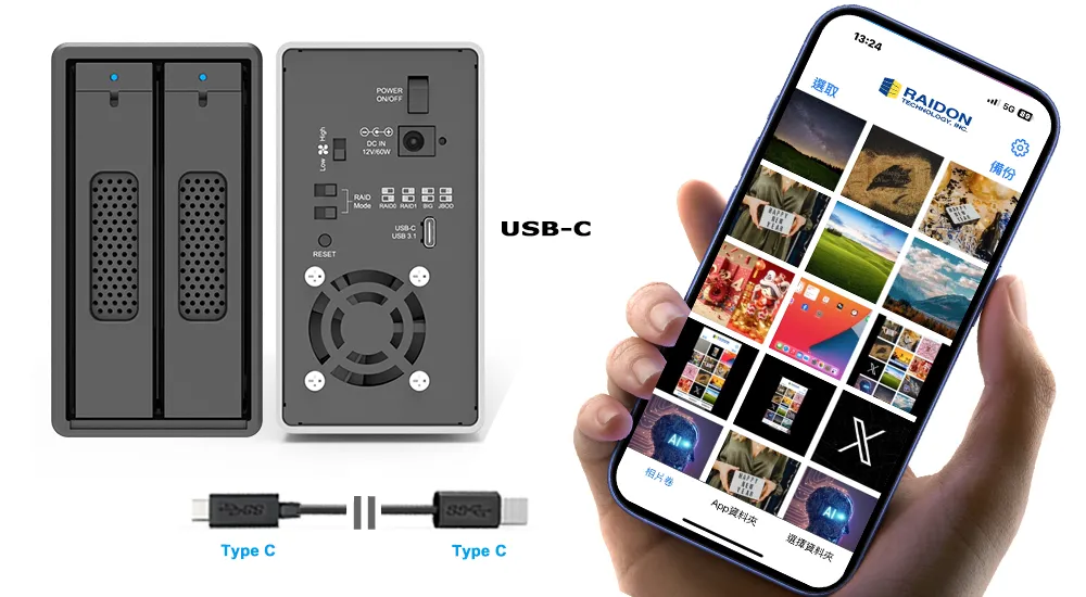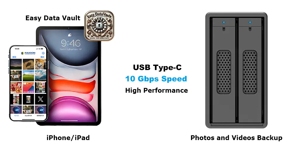 Promote your storage and backup capabilities with the RAIDON ST2-B31 Series (ST2-B31 & ST2-BA31) RAID storages and Easy Data Vault app for iPhone 15 and later (with USB-C). This powerful pairing combines high-speed hardware RAID with an intuitive mobile app, delivering efficient and secure data management.