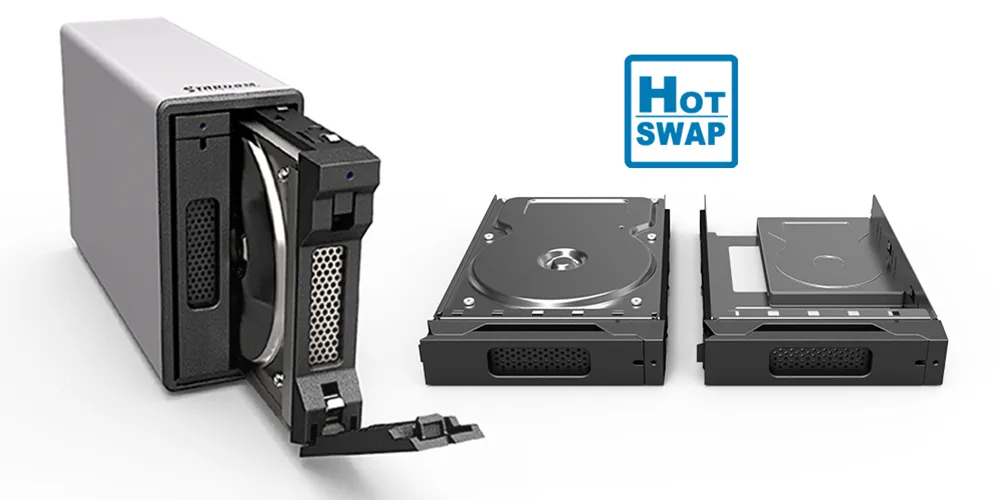 1. Install Your HDD/SSD: Use the pin key and hard disk tray to quickly set up your HDD/SSD inside the ST2-B31 Series.