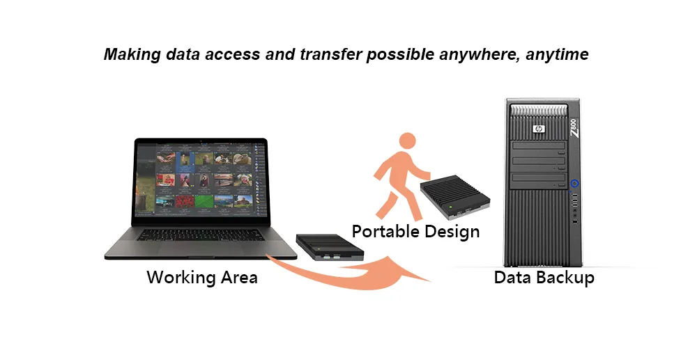 This design consideration ensures that users can effortlessly transport their data, facilitating seamless workflows irrespective of location, from office desks to remote work sites.