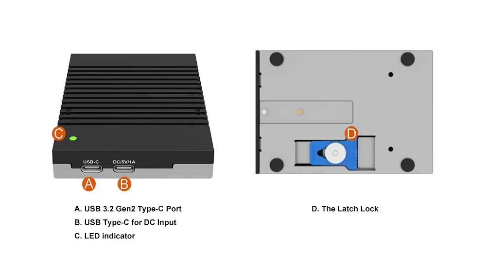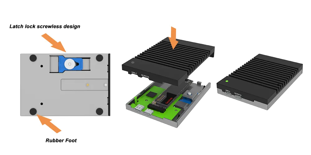 4. Effortless Setup: The user-friendly, screwless latch lock design allows for easy SSD installation and removal, reducing the hassle of upgrades or replacements.