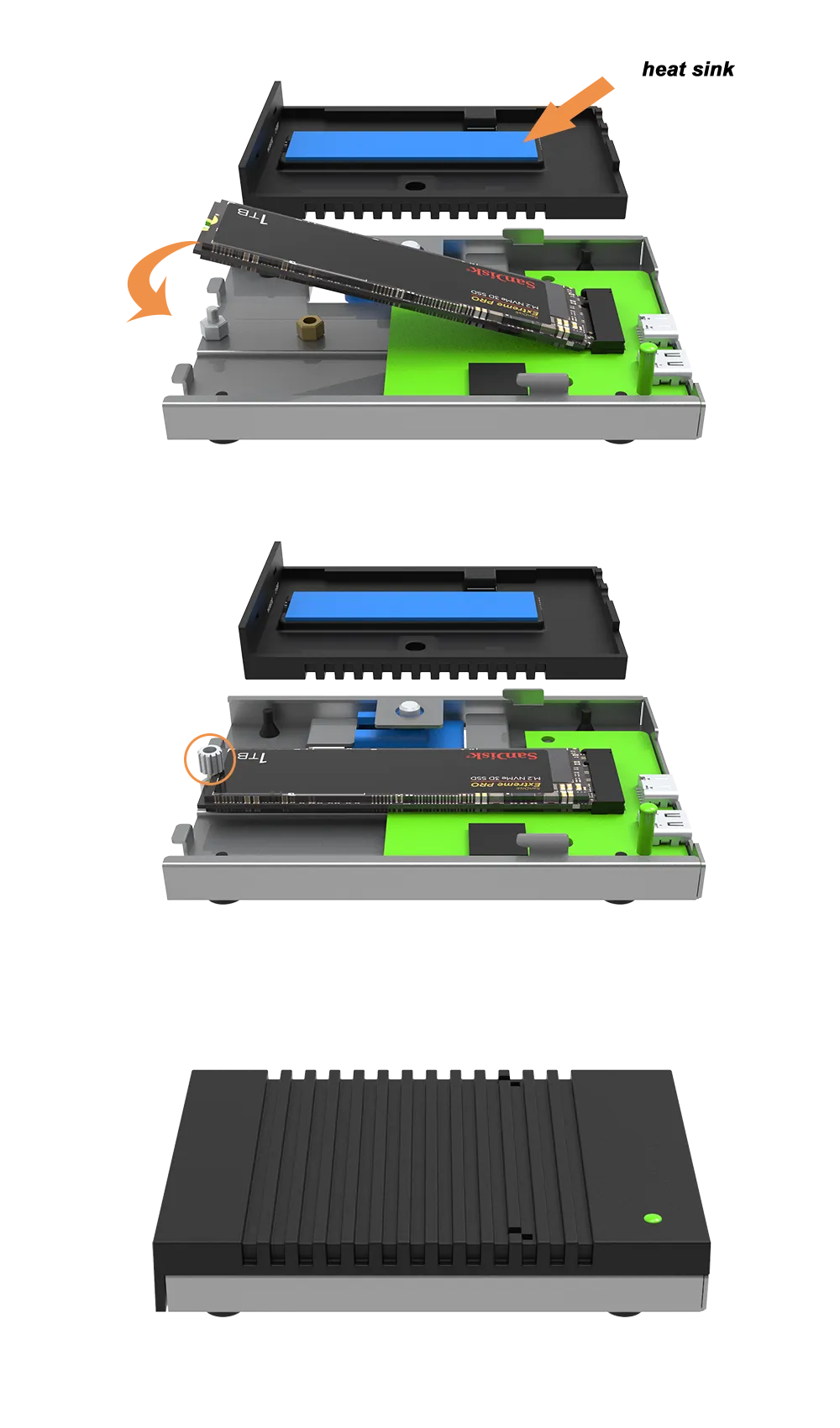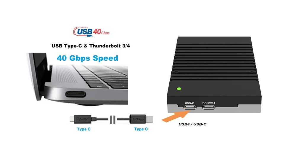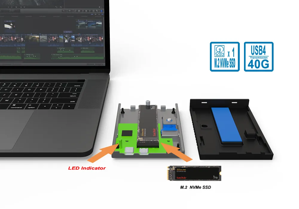 3. Versatile Compatibility: The device's support for various M.2 NVMe SSD sizes and its Type-C interface with Thunderbolt 3/4 compatibility ensures it works seamlessly with a broad range of SSDs and devices.