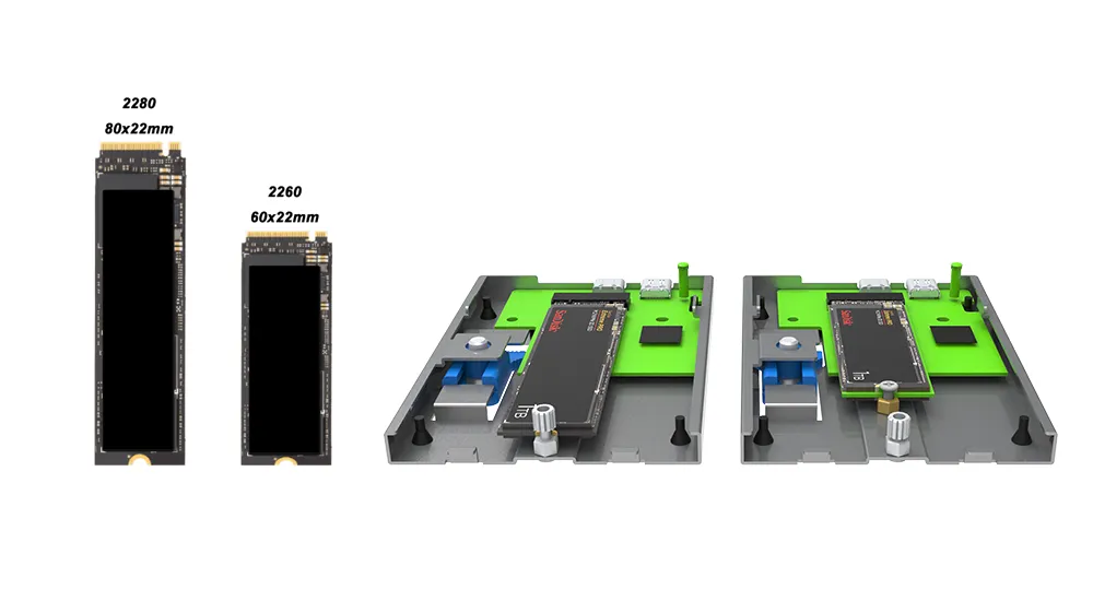 Supports M.2 NVMe SSDs of Varying Sizes
