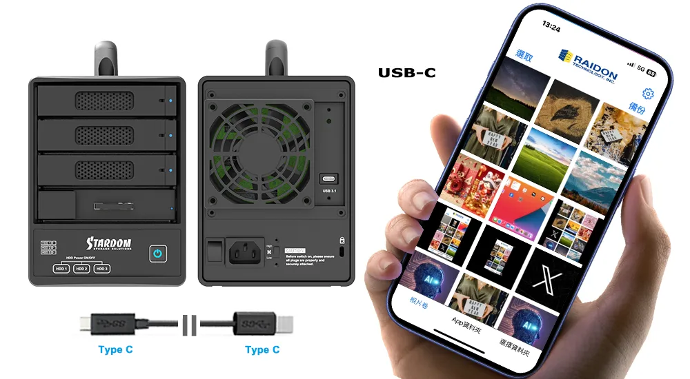 • Effortless Mobile Backup: Seamlessly transfer and store photos, videos, and other large files directly from your iPhone (especially iPhone 15 and later with USB-C) to the high-capacity ST4F-B32 storage system.