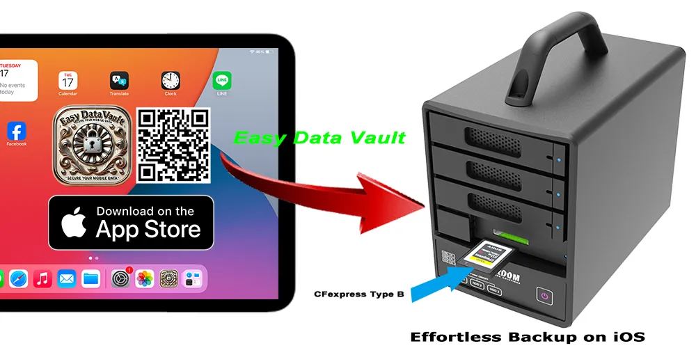 Elevate your data management with the ST4F-B32, a versatile and high-performance storage solution designed specifically for professionals and content creators who demand reliability, speed, and ease of use. Paired seamlessly with the intuitive Easy Data Vault app for iOS, this robust device simplifies backups without the need for cloud subscriptions. Supporting JBOD configuration, the ST4F-B32 accommodates three individual hard drives and one CFexpress card, granting independent access to each storage medium—delivering the flexibility, power, and performance required for efficiently storing, managing, and protecting large media files.