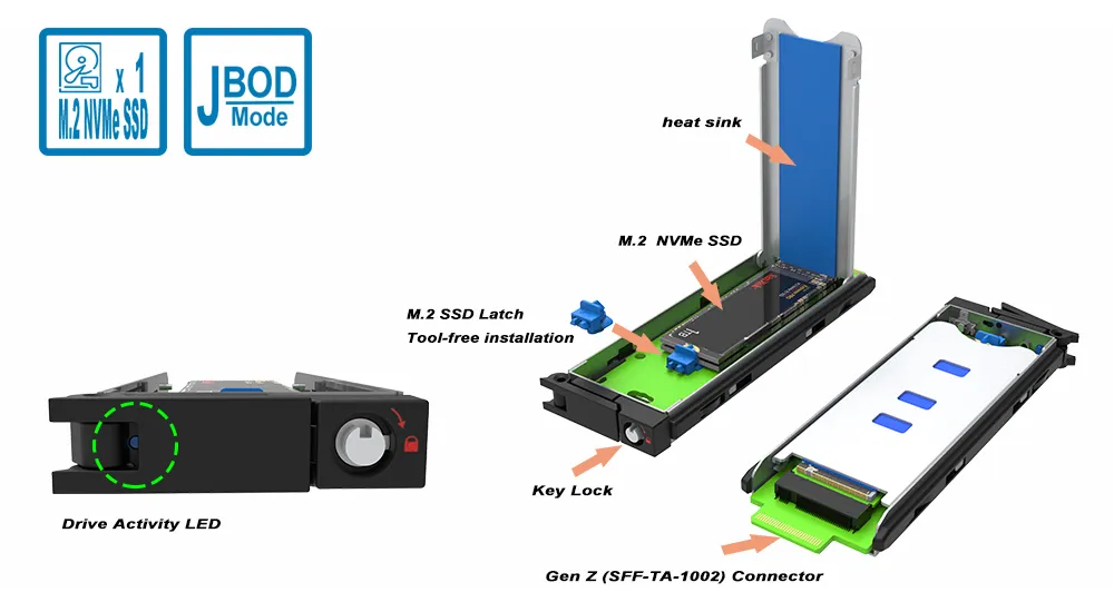 5. Secure Tray with Key Lock: The removable SSD tray has an integrated lock mechanism – turn the key to physically secure the drive in place. This deters unauthorized removal and protects mission-critical data.