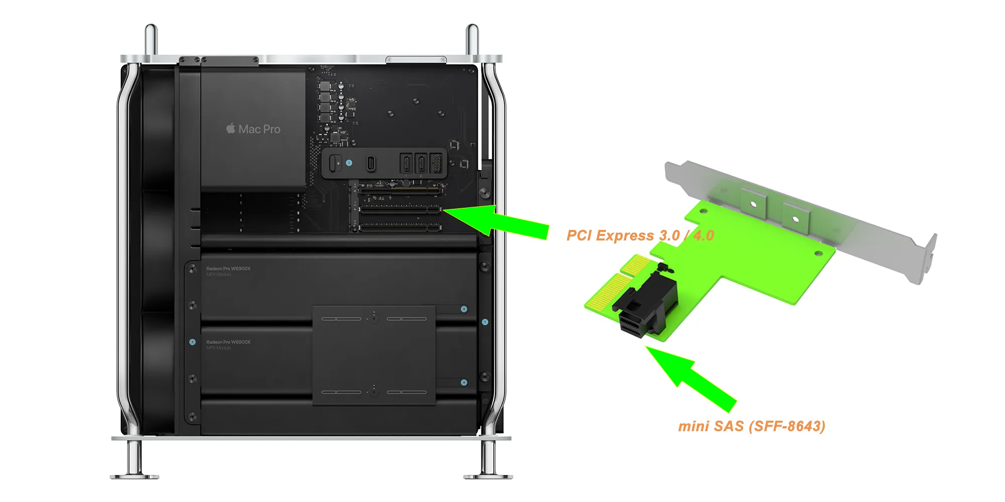| Interfaces | PCIe 3.0/4.0 x 1 mini SAS (SFF-8643) x1 |