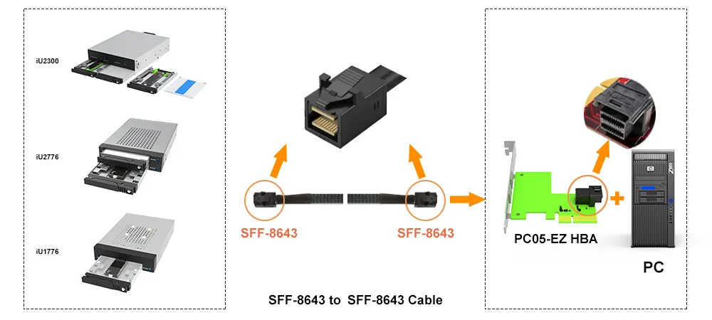 - Robust and Reliable Connection: The mini SAS (SFF-8643) connection interface ensures a stable and dependable connection, which is crucial for maintaining data integrity and consistent performance.