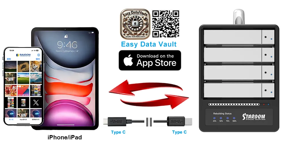 ● Mobile Workflow: Compatible with Easy Data Vault for direct backup/restore operations with USB-C iPhone and iPad devices.