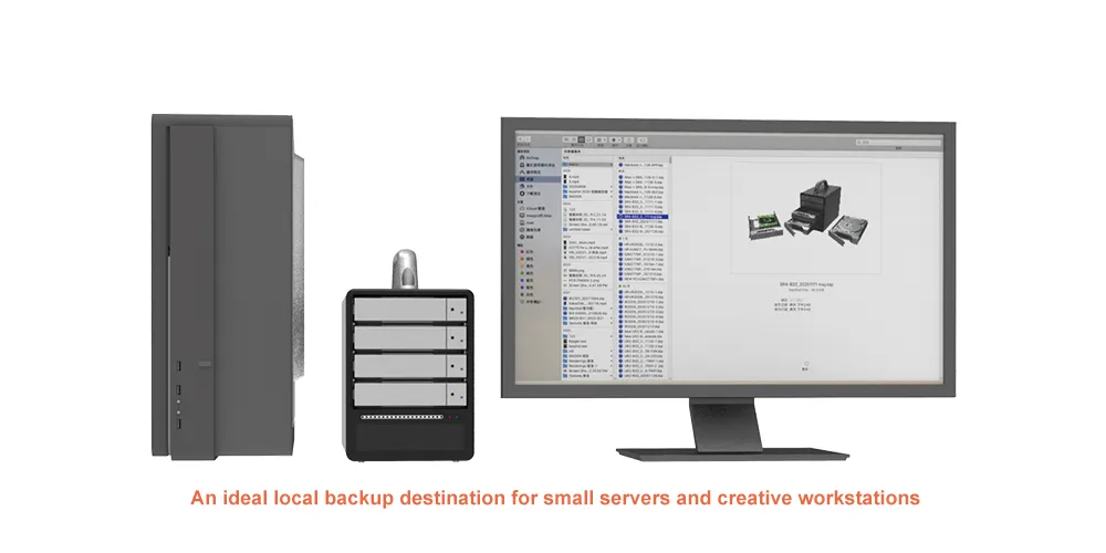 A scalable target for workstation imaging and long-term asset retention. With high capacity and hardware redundancy, the SR4-B32 mitigates the risk of disk failure, making it an ideal local backup destination for small servers and creative workstations.