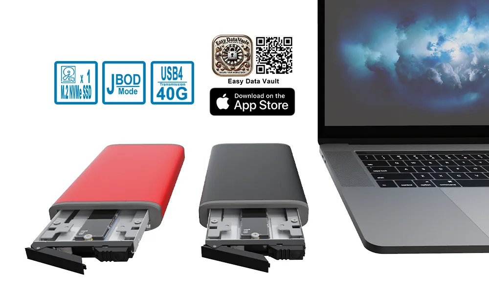 The MU1-B4 is more than just a storage enclosure — it’s a versatile, professional-grade solution built for real-world workflows. With 40 Gbps USB4 performance, tool-free SSD swapping, and seamless integration with the Easy Data Vault iOS app, it empowers creators, developers, engineers, and mobile professionals to work anywhere with speed and confidence. Whether you’re editing 4K/8K video, managing AI and data science projects, deploying systems in the lab, or backing up critical business data directly from your iPhone or iPad, the MU1-B4 delivers the performance, flexibility, and mobility modern workflows demand.