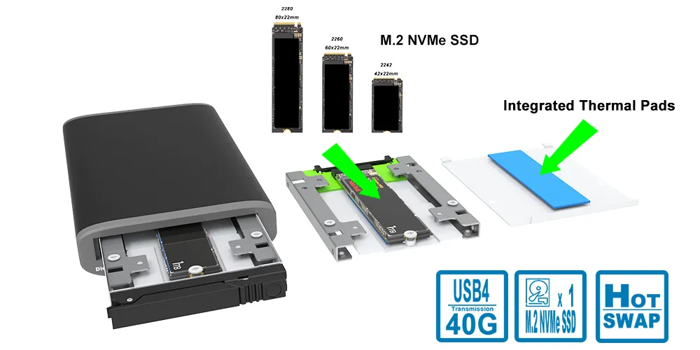 Optimized for one high-speed PCIe NVMe SSD, ensuring stable, high-performance external storage.