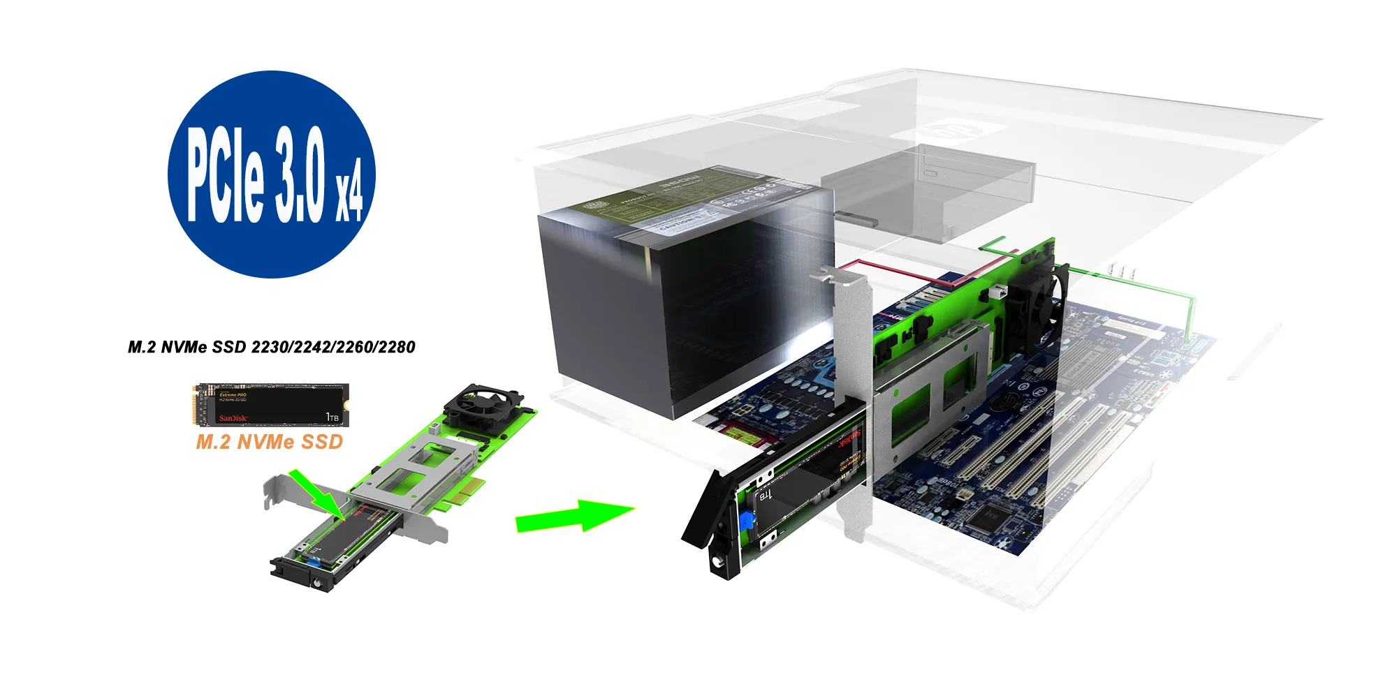 ● Universal M.2 Compatibility: Supports a wide range of M.2 NVMe SSD sizes including 2230, 2242, 2260, and 2280.