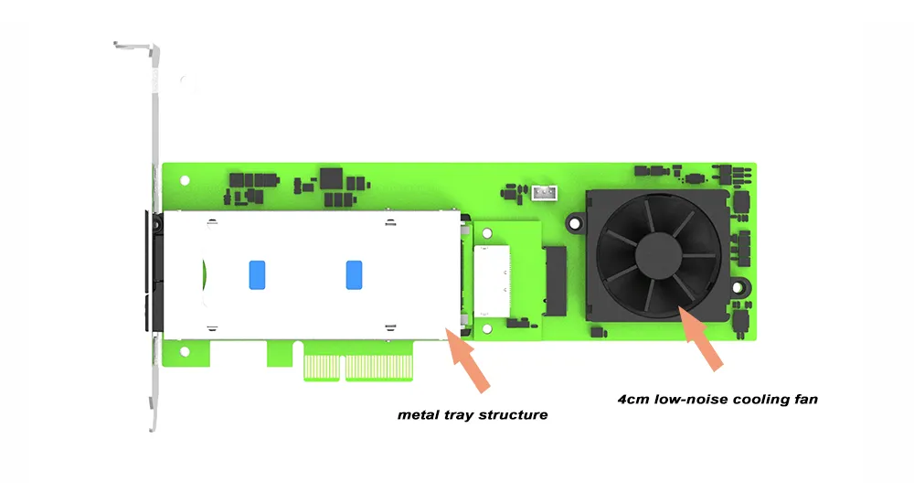 Space is limited in 1U racks. The PC04M-41 allows system integrators to add high-speed NVMe cache or boot drives to servers that may lack onboard M.2 slots or easy access to them.