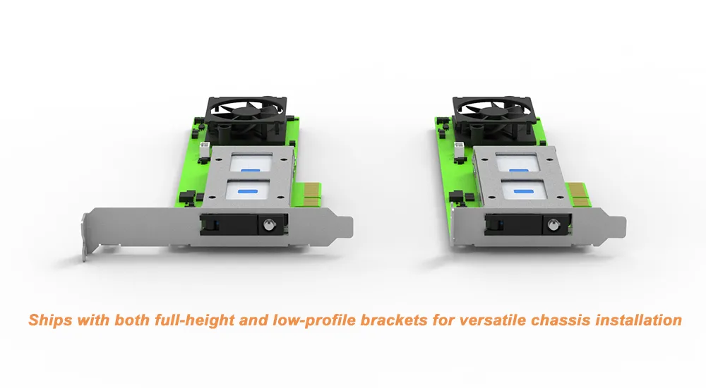 ● Versatile Mounting: Includes both a full-height bracket for standard desktop towers and a low-profile (half-height) bracket for 1U servers and compact form-factor (SFF) computers.