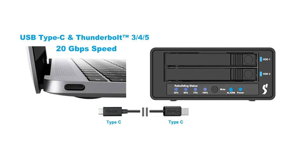 Connect seamlessly to USB-C Thunderbolt 3/4/5 hosts with full performance support.