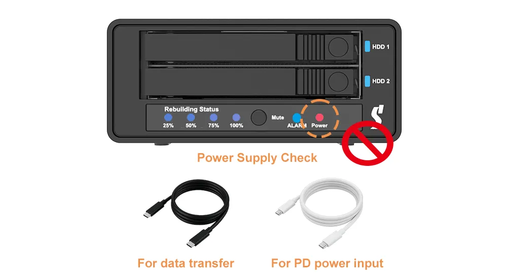 Note 2: Cable Use: Use the white USB-C cable for PD power input only (DC IN). Do not use it for data transfer.