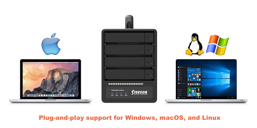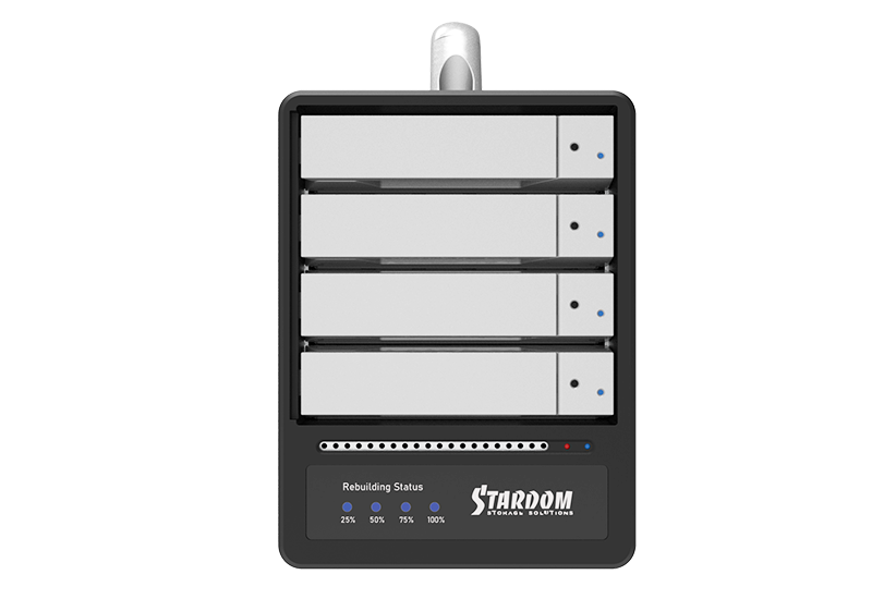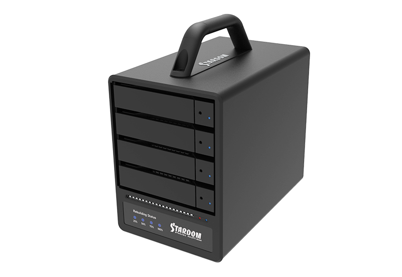 A: The SR4-B32 is the hardware RAID option in STARDOM’s 4-bay lineup, adding RAID modes (including RAID 5) for data protection and sustained workflow continuity. By contrast, ST4-B31 and ST4-B32 are JBOD enclosures designed for independent-drive expansion (no RAID). For connectivity, all three use USB-C; SR4-B32 can also be used with Thunderbolt™ 3/4 hosts when connected as a USB storage device (performance follows USB negotiation).
