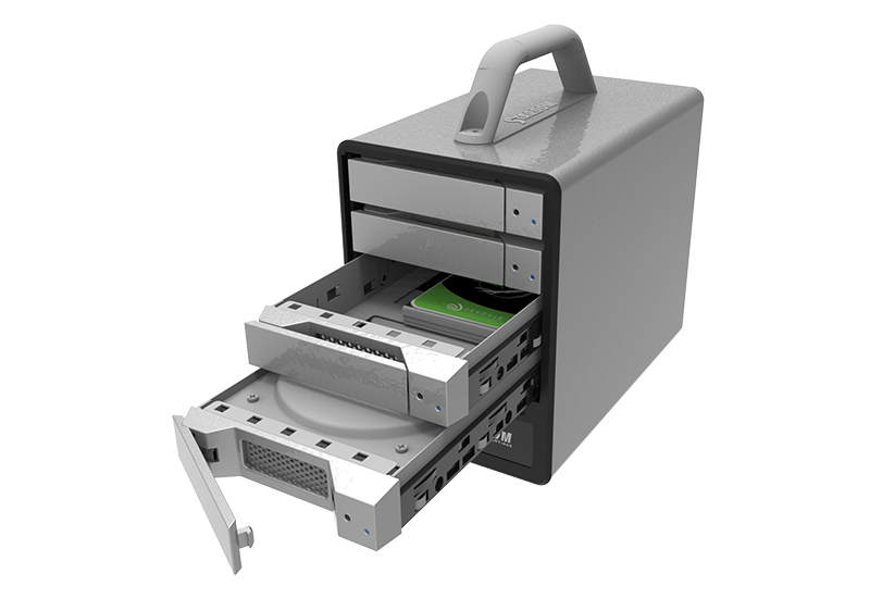 Safely transport massive datasets between office locations without the risk of a single drive failure causing data loss. The array maintains RAID 5 parity during transit; if a drive is damaged, the volume remains accessible in "degraded mode" and rebuilds automatically once the drive is replaced.