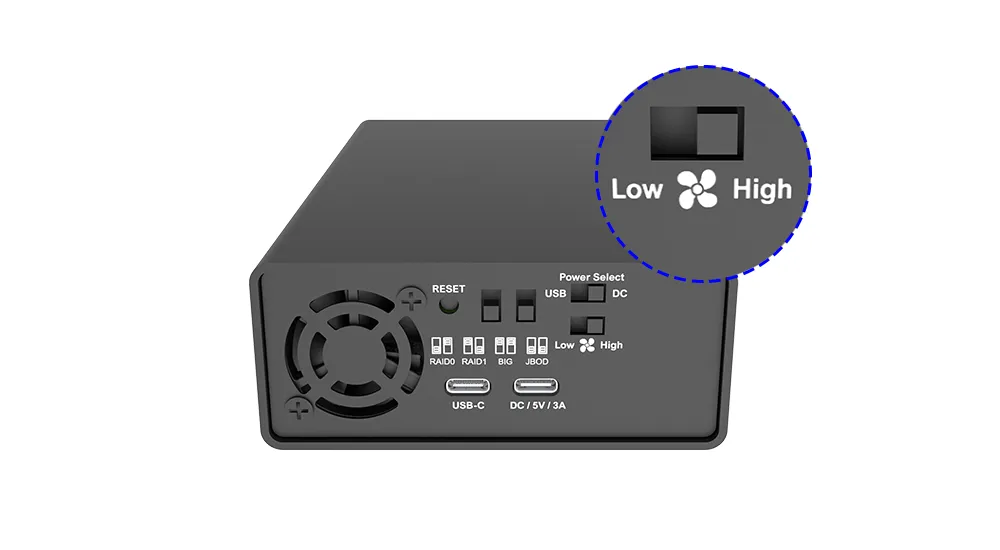 The ZR2-BA31BP is equipped with SATA 6G capabilities, ensuring swift data transfer rates. Further enhancing its versatility is an integrated RAID mode switch, allowing users to swiftly toggle between RAID 0, RAID 1, JBOD, and Big configurations. This feature not only optimizes storage performance but also offers varying levels of data redundancy and management based on user preferences.