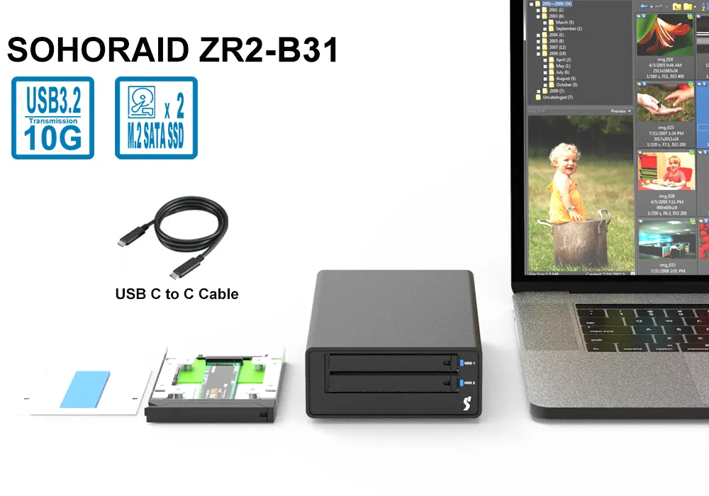 | Package Accessories | * ZR2-B31 x 1 (with removable 2 x M.2 SATA Converter) * USB 3.2 Gen 2 (Type-C to Type-C) Cable x 1 * Accessory kit * Quick Installation Guide |