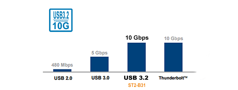 全新設計的 ST2-B31 支援 USB Type-C 介面,並符合USB 3.2 Gen 2 規範。這意味著使用者不需要區分 USB 連接線的正面和背面,就可以直接利用 USB 的連結線一端插入 ST2-B31,另一端插入您的 Mac 或 PC 裝置的 USB Type-C 埠中,方便快速的延伸您的儲存設備。