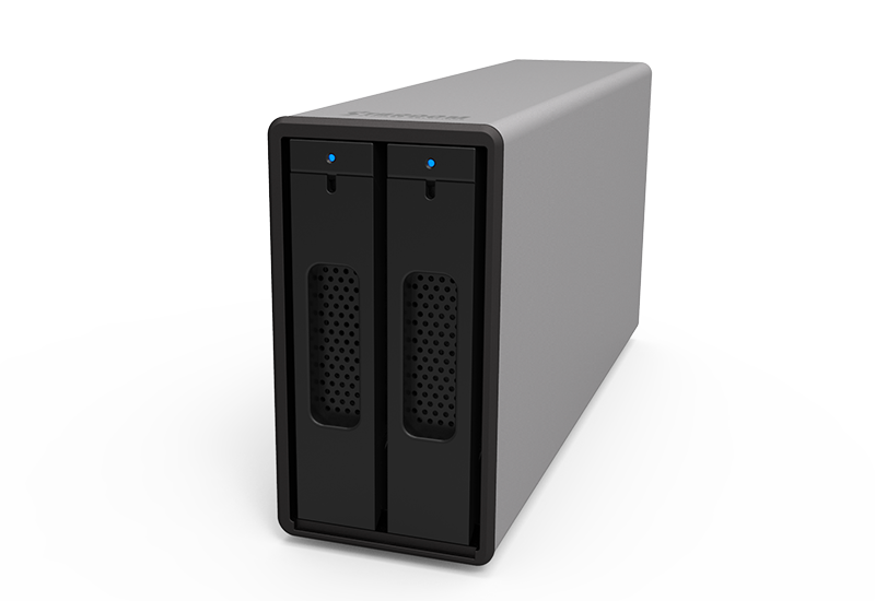 透過軟體陣列的儲存系統並無法解決跨平台使用的問題,唯有使用硬體陣列晶片,才能讓使用者安裝於 Mac 或 Windows 電腦。藉由 ST2 內建的 SATA 6G 硬體陣列晶片與 USB 3.2 Gen 2 主機介面,傳輸速度不只是快,不管是設定成 RAID 0 或是 RAID 1,你都不用再擔心跨平台使用的問題了。同時藉由硬體陣列,所有資料都是經由內建的CPU運算處理,這樣的優勢,讓你的電腦效能可以專注於正在運行的軟體與工作,而不是去應付儲存裝置的傳輸。(儲存陣列於 Mac OS 與 Windows PC 平台之間使用,需使用相同檔案格式,例如 : exFat 檔案格式)。