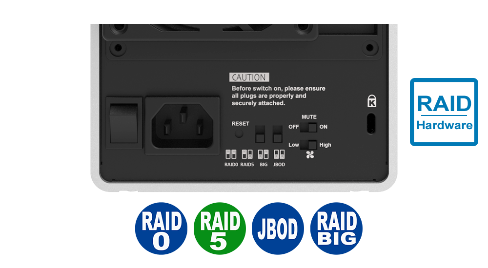 ● Fault Tolerance: RAID 5 mode maintains data accessibility during a single drive failure.