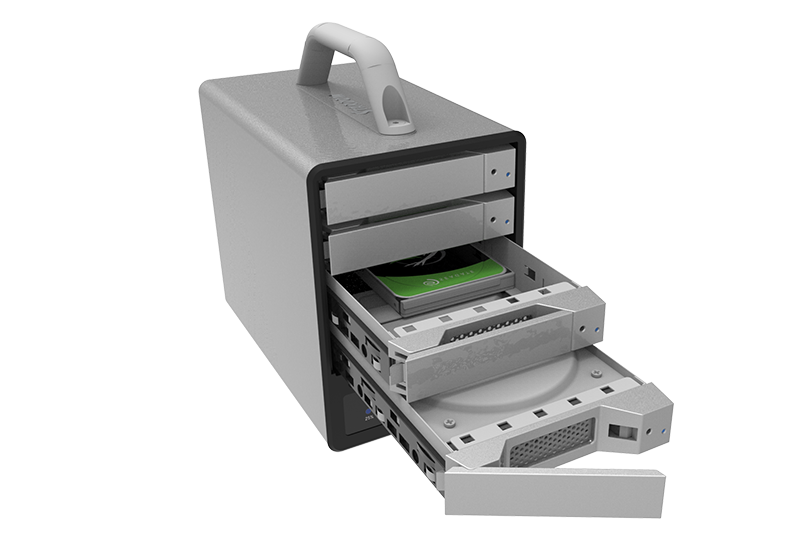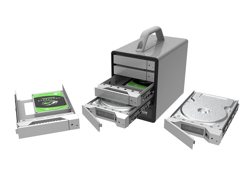 Safely transport massive datasets between office locations without the risk of a single drive failure causing data loss. The array maintains RAID 5 parity during transit; if a drive is damaged, the volume remains accessible in "degraded mode" and rebuilds automatically once the drive is replaced.